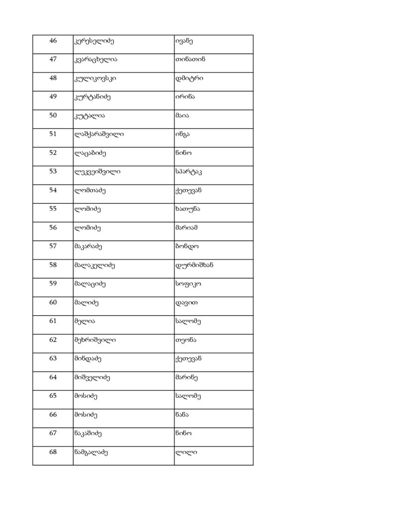 გთხოვთ იხილოთ თანდართული სია (თქვენი გვარი შეგიძლიათ მოძებნოთ ანბანის მიხედვით) და მობრძანდეთ 4 ოქტომბერს, დილის 09:00 საათიდან “ექსპო ჯორჯია”-ს მე-3 პავილიონში.
